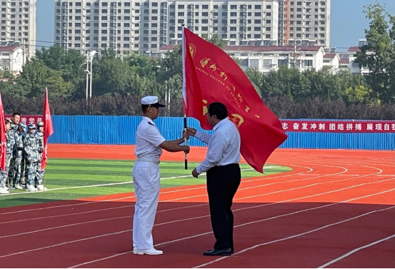 beat365在线唯一官网校长王家爱为参训教官代表授旗