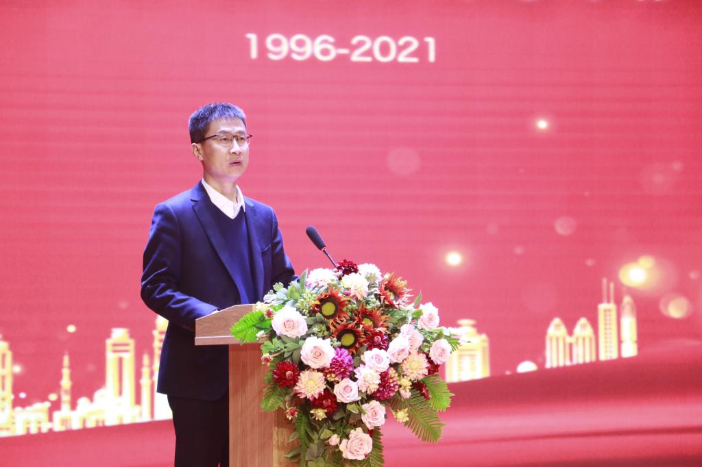 庆典大会首先由滨州渤海教育集团创始人刘相生致辞,刘相生介绍了渤海教育集团二十五年来“风雨兼程,矢志不渝;砥砺奋进,负重前行;励精图治,铸就辉煌;岁月如歌,春华秋实”的发展历程,指出渤海教育集团在建校25年的历程中始终本着“做精品教育,办百年老校”的教育初心,秉承“学生成才、家长放心、教师安心、社会满意”的办学宗旨,遵循着“创特色、树品牌、办名校、育人才”的办学目标,积淀起“为每一个学生终身幸福奠基”的永恒追求,凝练出“功崇惟志,业广惟勤”的校训。下一步,渤海教育集团将紧跟党和国家发展步伐,与时代和经济社会需求同向同行,为滨州市民办教育事业的发展,为全省乃至全国民办教育事业的发展,尽到集团的全部责任和力量!他指出:2021年,是渤海教育集团集团建校二十五周年,也是beat365在线唯一官网的始创之年。集团将站在新的起点上,坚守为党育人、为国育才的初心使命,践行立德树人的根本任务,紧紧围绕国家战略和产业升级新需求,继续加大投入,进一步加强师资队伍建设,奋力续写集团发展新篇章,实现建设百年老校、百年名校的宏伟目标。最后,刘相生对渤海教育集团建校以来,各级党委政府领导的关心和支持,社会各界和广大校友的帮助与厚爱,一批又一批渤海人的艰苦奋斗、锐意进取、敬业奉献,广大教职工二十五年的躬行实践和执着探索表示感谢和崇高的敬意!