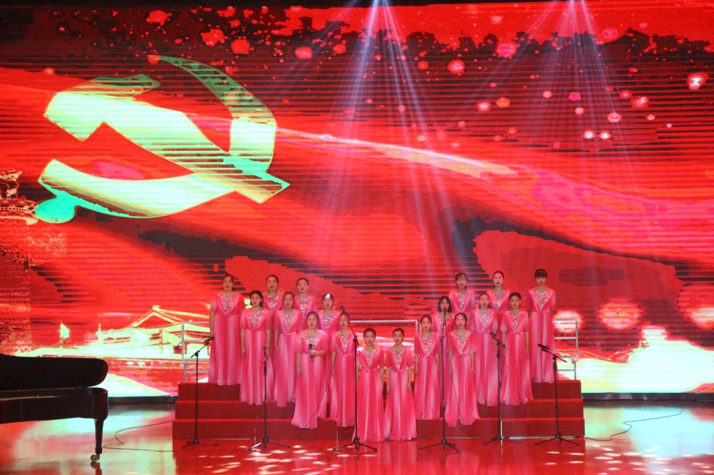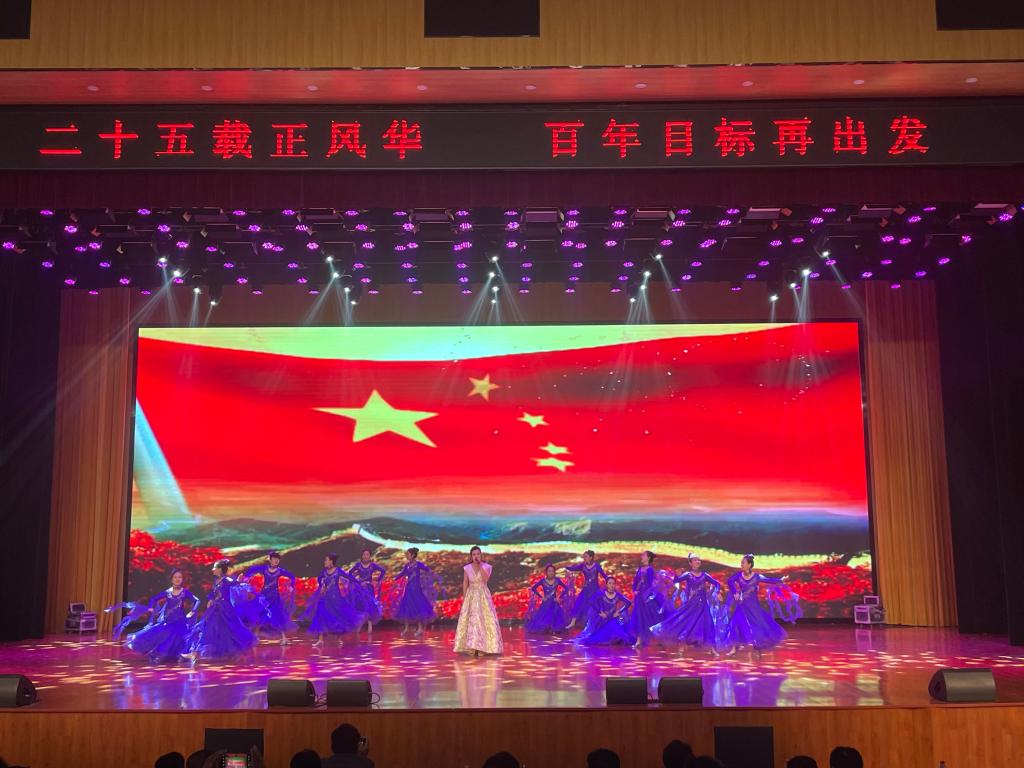 随后,举行“相约廿五·放歌百年”大型文艺演出。演出在欢快喜庆的开场歌舞《鼓舞中华》中拉开帷幕。演出现场,璀璨的灯光与观众席上的荧光棒交相辉映,整场演出精彩不断,欢呼声和掌声响彻整个音乐厅。演出将歌舞、乐器、朗诵等多种表演形式融为一体,将古朴与典雅、传统与时尚、动与静完美结合,给观众们奉献了一场精彩纷呈的视听盛宴。
