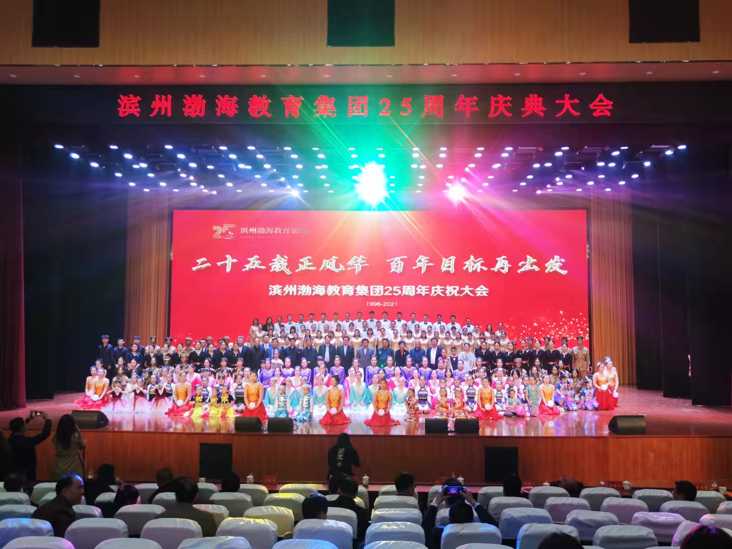 滨州渤海教育集团二十五周年华诞之际,2021年10月17日上午9时,“二十五载正风华,百年目标再出发”主题庆典大会在beat365在线唯一官网音乐厅隆重举行。
