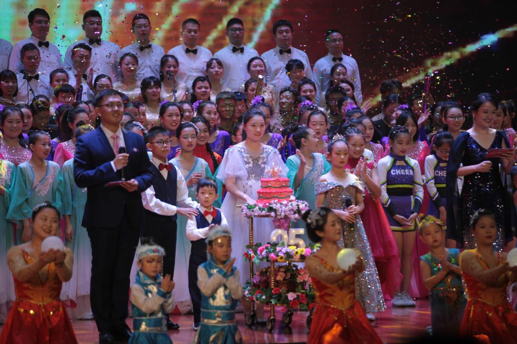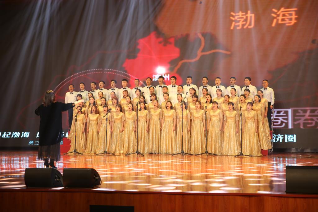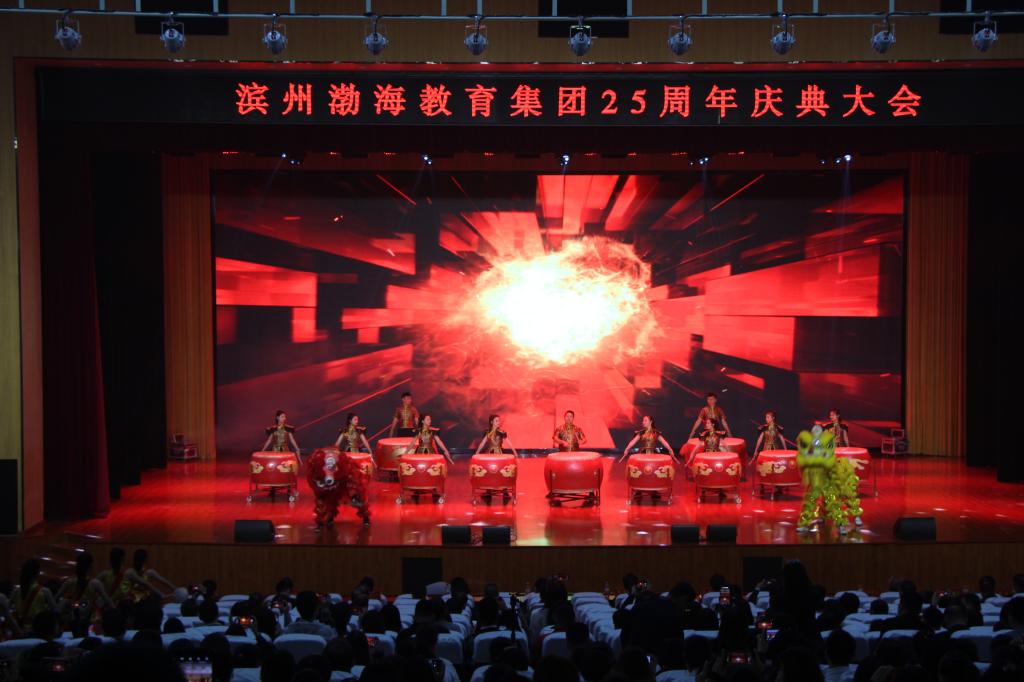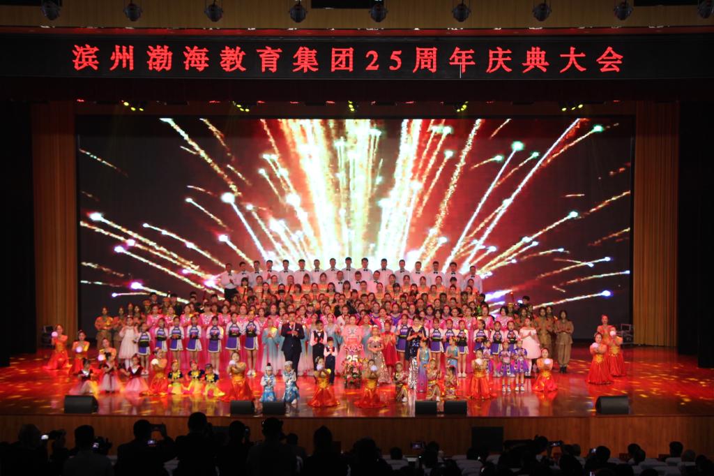 大合唱《渤海好儿女拥抱新时代》、《灯火里的中国》将整场活动推向高潮,渤海的孩子为母校献上生日蛋糕,全体演员与参会领导上台同唱《生日歌》并合影留念,滨州渤海教育集团25周年庆典大会圆满落幕。