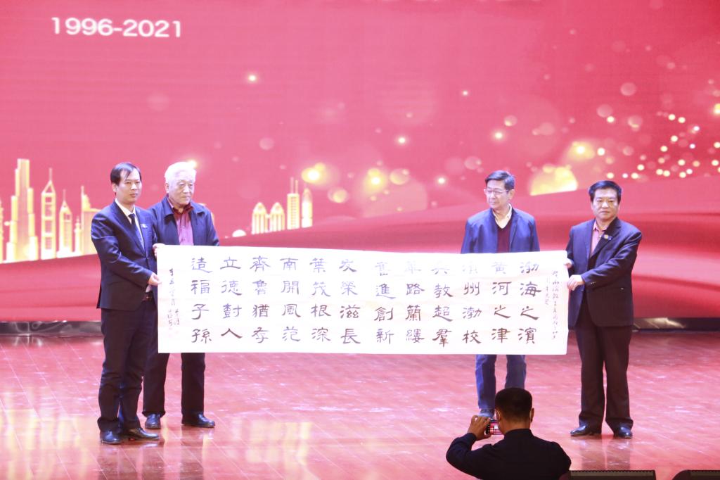 集团周年庆典得到了友好学校的广泛关注,山东省北镇中学、滨州实验学校、北京21世纪学校、潍坊职业学院、滨州职业学院、山东协和学院、德州云天教育集团、天津南开中学、新疆鸿德实验学校等友好学校发来贺信。山东省北镇中学党委书记、校长李东海同志在庆典大会现场宣读了贺信,南开中学原党总支书记田福安、校友会秘书长李溥亲自为集团周年庆撰写书法贺词,共同祝贺渤海集团25岁生日。