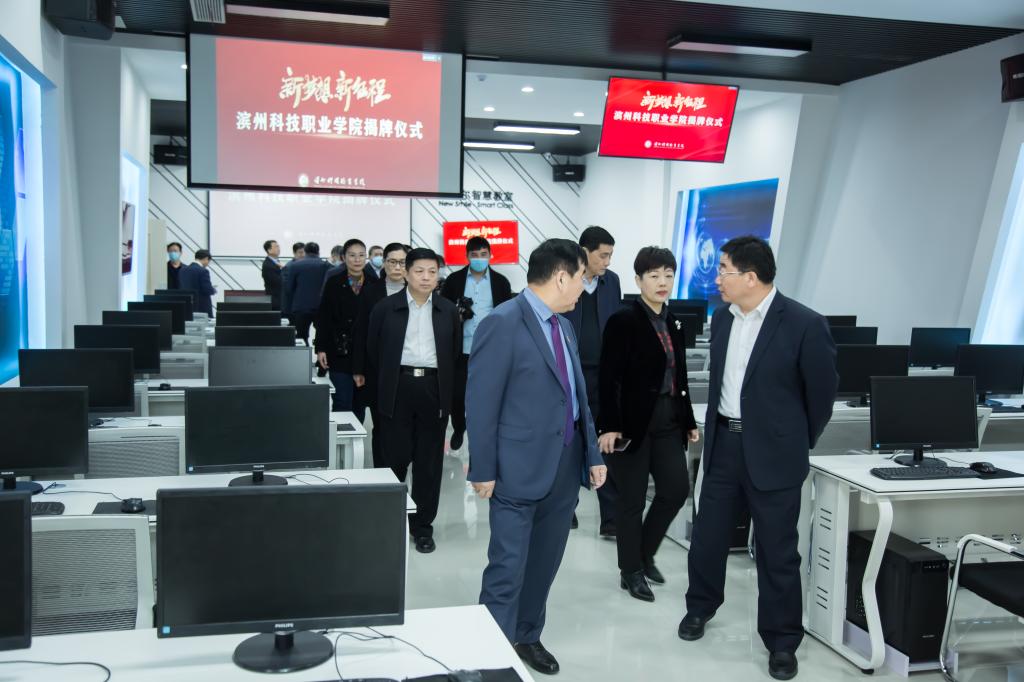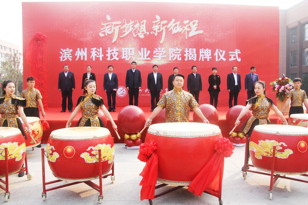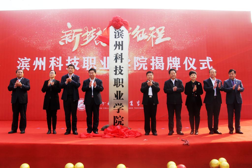 滨州市教育局、财政局、发改委、农业农村局、人社局等市级单位负责同志,滨城区教育和体育局负责同志,经济技术开发区教育局负责同志、高新区教育工作专班、惠民县教育和体育局代表,滨州市第一中学、潍坊职业学院、滨州职业学院、滨州市高级技工学校、鲁北技师学院等兄弟院校负责人及代表,经济技术开发区组织部、投资促进局、经济发展局、财政分局、政法信访办等负责同志亲临祝贺。学校党委书记刘相生、院长王家爱及全体领导班子成员、师生共计1800余人参加了揭牌仪式,共同见证了学校发展的这一历史时刻。