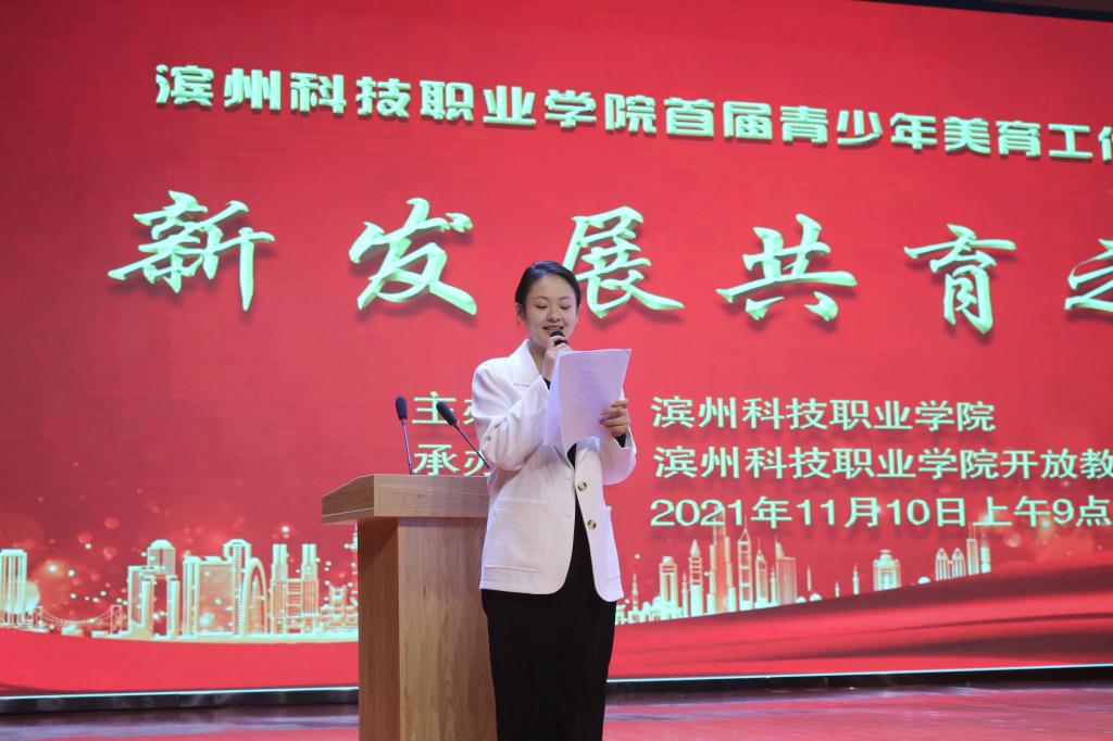 随后,滨州学院艺术学院李建军副院长致辞,他表示,美育成为一种行为健全的人格教育、全面发展的素质教育、心理健康的情感教育,美育的本质就是人性的教育。创新打造以更加开放、自由的学习方式构建切合学生需求的实施路径和内容,积极探索满足现代学生多元需求的教育理念和教学模式,破解学校美育工作现实困境,提升美育育人质量,真正落实学校“立德树人”的根本任务。