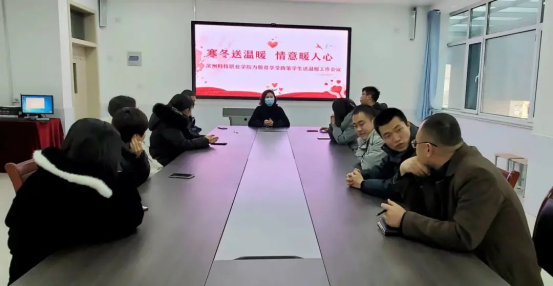 学院领导高度重视,副院长刘曙明全面部署送温暖事宜,为享受政策学生精心购买各类物品。1月14日,学生工作处处长郭倩组织班主任老师们召开以“寒冬送温暖 情谊暖人心”为主题的为脱贫享受政策学生送温暖工作会议。会上,郭处长安排走访事宜,对入户走访进行了周密的安排,她强调了此次工作的重要性,号召大家尽心尽力做好送温暖工作。