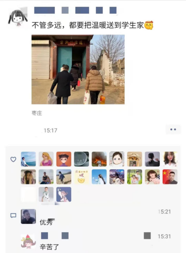 正如一位班主任老师在朋友圈发的“不管多远,都要把温暖送到学生家”,有部分学生家比较遥远,学工处两位老师和班主任驾车摸黑出发,前往菏泽、滕州两地,只为将温暖亲手送到学生及家长手中。学生家长对学校的慰问及老师们一直以来的关爱表示感谢,并表示会勉励孩子努力奋斗,吃苦耐劳,用优异的成绩回报学校及社会。