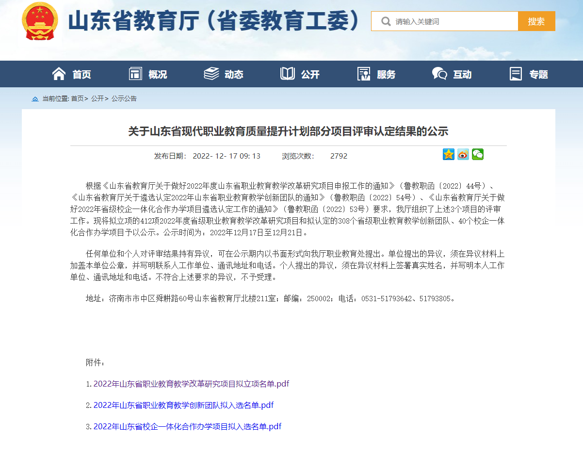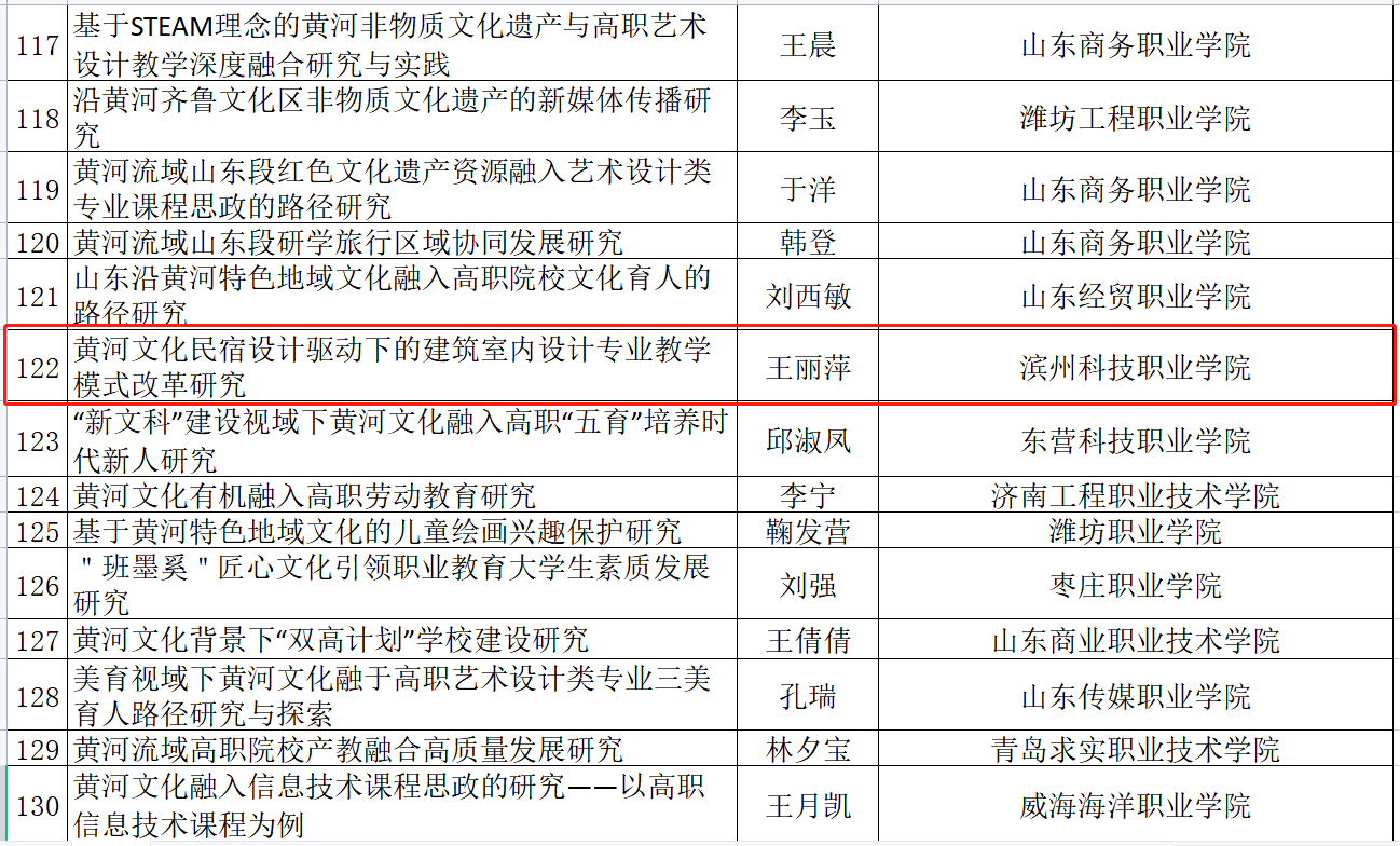 近日,山东省教育厅发布了《关于山东省现代职业教育质量提升计划部分项目评审认定结果的公示》,beat365教务与科研处处长王丽萍主持的《基于产业学院“三链融通、五业贯通”的专业建设模式研究与实践——以高职商贸类专业为例》项目获得重点立项,获得项目经费6万元;前期山东省教育科学研究院公布了《山东省“黄河流域生态保护和教育高质量发展”教育教学专项课题拟立项名单公示》,王丽萍处长主持的《黄河文化民宿设计驱动下的建筑室内设计专业教学模式改革研究》获得立项。两项省级教研教改项目的立项,实现了beat365省级课题立项历史性突破。学校教务与科研处将以此为契机,进一步推进职业教育教学改革,加强质量提升项目建设,在专业建设、课程与教材建设、人才培养、教学内容与方法、课程思政以及产教融合等方面不断探索,催生更多标志性成果,助推学校实现跨越式发展。