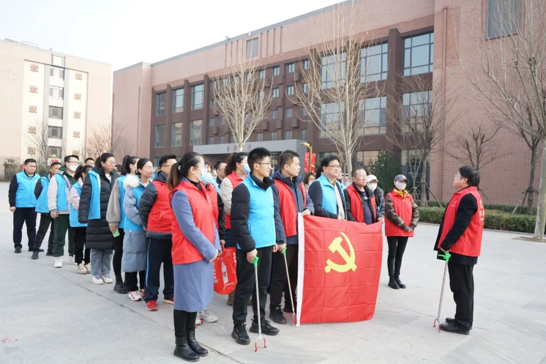 全体党员志愿者自带工具、分工协作、有条不紊的投入到热火朝天的卫生清理活动中。对学校门口和学校内部道路、教学楼、实训楼、宿舍楼、操场等公共区域进行了集中打扫。党员志愿者们发扬奉献精神,分工协作,密切配合,拿起扫帚,撑起垃圾袋,躬身捡起草丛里面的落叶、垃圾袋等,细心清理卫生死角垃圾,分散到各个点位,将每一个卫生死角都清理的干干净净,他们不怕脏不怕累,齐心协力使校园环境焕然一新。