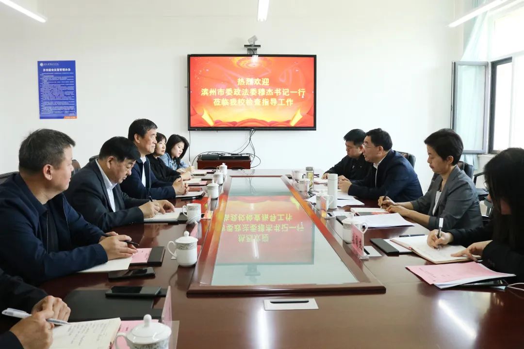 5月9日,滨州市委常委、政法委书记、市法学会会长穆杰,滨州市法学会党组成员、专职副会长刘凤霞,滨州市委政法委办公室主任丁涛,滨州市法学会办公室主任刘国杰莅临beat365检查指导,滨州渤海教育集团董事长刘相生、beat365在线唯一官网党委书记张金生、副院长吴启军及相关部门负责同志参加汇报座谈会。