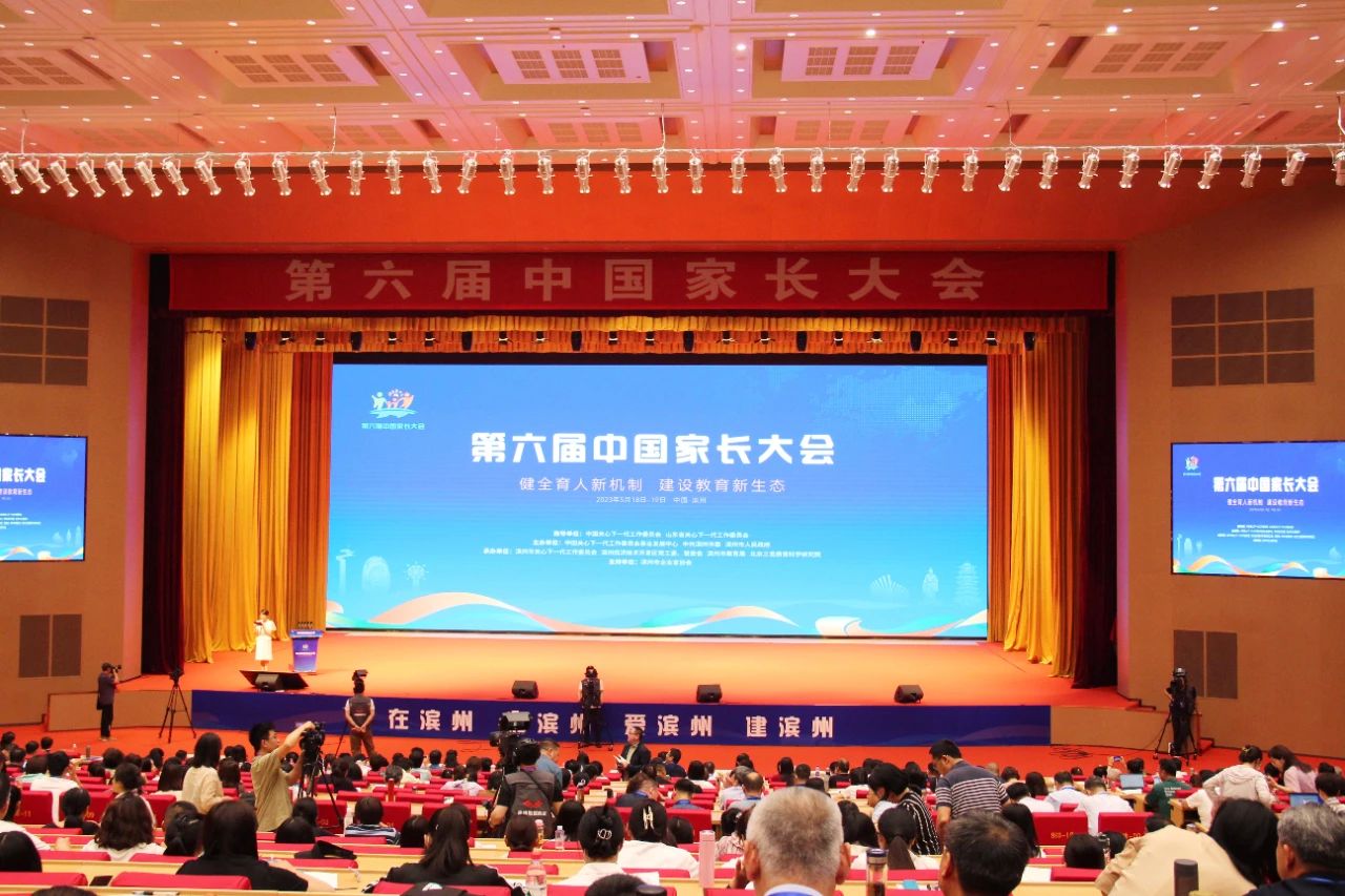 5月18日-19日,第六届中国家长大会在滨州隆重召开,大会以“健全育人新机制,建设教育新生态”为主题,普及家庭教育理念和知识,增进家庭幸福、社会和谐和教育高质量发展,助力未成年人健康成长,大会分为“擘画宏图”主旨报告、“共建共赢”智慧分享、“育见未来”高峰论坛、“协同育人”参访活动四大板块。来自全国各地家庭教育领域的专家学者进行主题演讲,并有优秀家长代表和优秀“家校社共育”实践区代表进行经验交流和智慧分享。