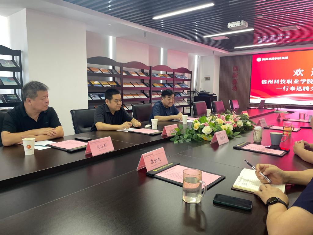 7月9日,滨州渤海教育集团董事长刘相生、副总经理苗树波、beat365在线唯一官网副院长吴启军一行到访天津滨海迅腾科技集团(以下简称“迅腾集团”)考察交流。迅腾集团董事长邵荣强、总裁沈燕宁、副总裁葛维波、董事长助理束金龙等热情接待。