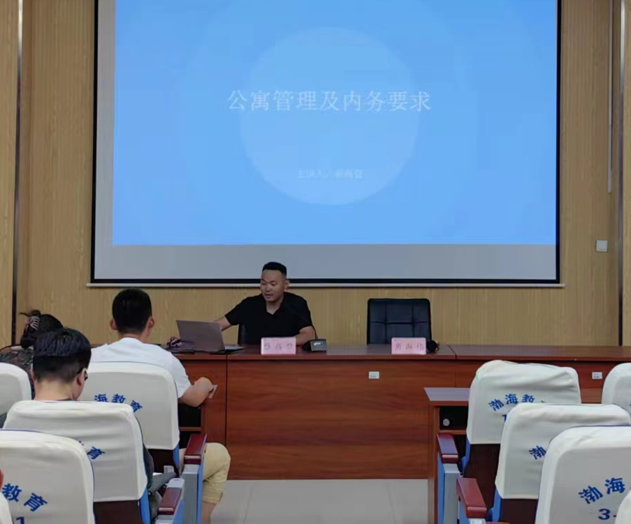 蔡高登老师从学生公寓安排、公寓管理及内务分享了辅导员值班安排以及值班职责,提出工作要求维护宿舍安全,督促学生宿舍卫生,为整理维护宿舍环境,共同打造美好校园努力。