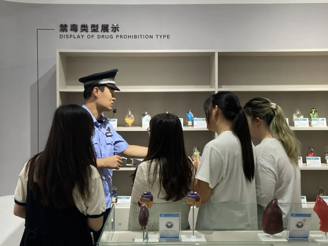 课堂上,耿广队长围绕禁毒主题,从毒品的定义、种类以及吸食毒品带来的严重后果等方面深刻阐述了识毒、防毒、禁毒的重要性,强化师生抵制毒品侵害的防范意识。同学们近距离观看了仿真毒品模型,了解人体吸食毒品后产生的变化,更加直观地感受到吸食毒品对个人、家庭和社会带来的危害。还通过一些现实示例,告诫同学们要自觉抵制诱惑,谨慎交友,积极培养健康、乐观、向上的良好生活习惯。