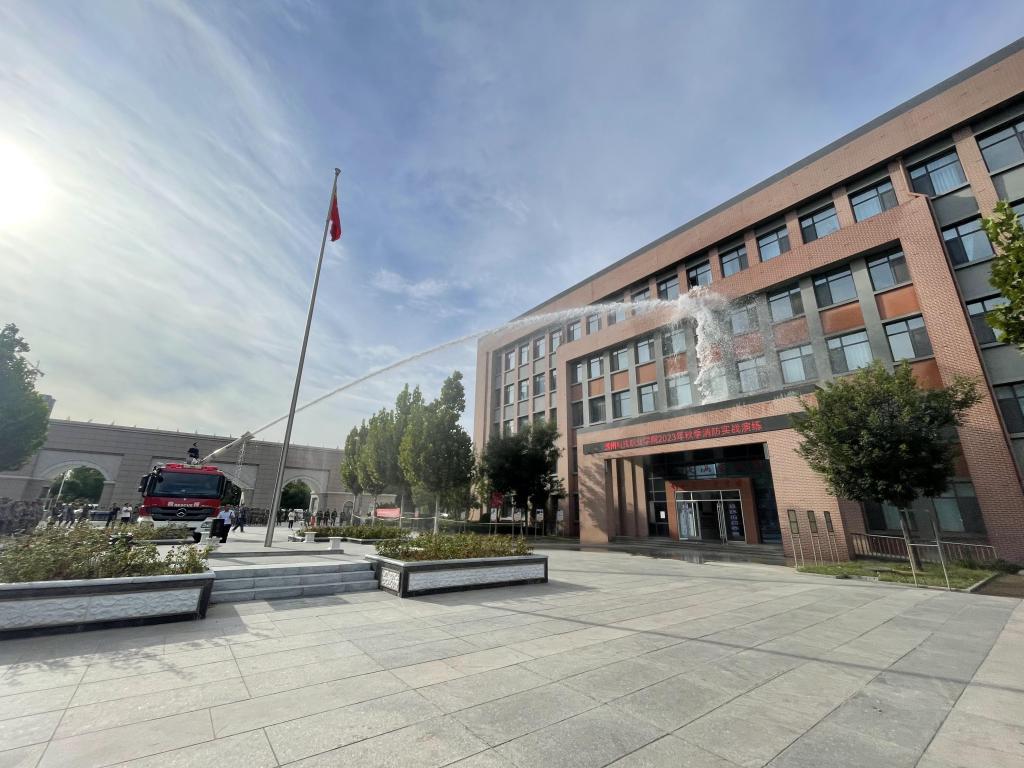 本次消防演练分为灭火救援演练和消防知识讲座两个部分。救援演练模拟为全院师生正在上课,某办公室因电线短路引发火灾,烟雾从窗户飘散出来,值班巡逻保安队员发现火情,并第一时间发出火警信号。随后,安全与后勤处值班干部,立即报告当日值班院领导,迅速通知各救援人员到达火灾现场。与此同时,值班人员携带灭火器材,快速到达火灾现场。随即,各工作组根据分工迅速组织救援,疏散引导组引导学生向安全区撤离,灭火行动组启动消防设施配合消防员灭火,安全警戒组拉起警戒线维护好秩序,医疗救护小组对伤员进行紧急救治。最终,在学校灭火救援力量的共同努扑救下,大火灾被扑灭。