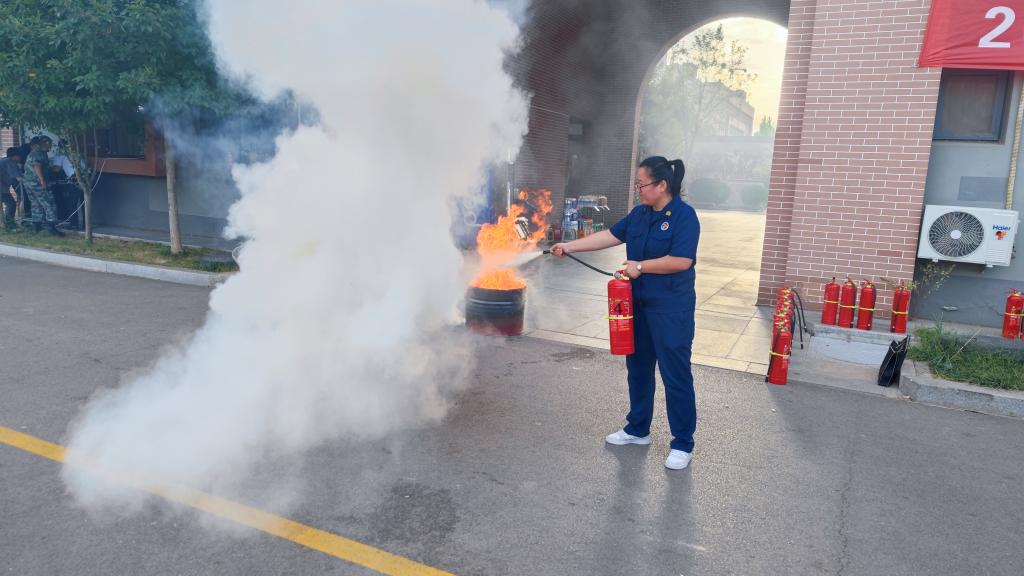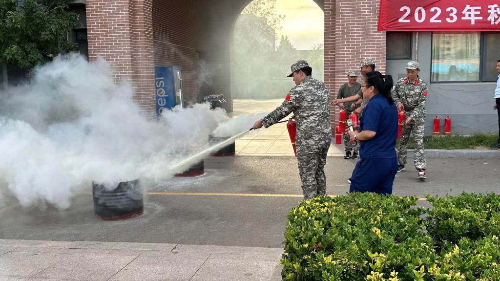灭火救援演练结束后,所有人员移步操场,由滨州经济技术开发区消防救援大队王珊珊进行消防知识讲座,讲解了日常生活中的消防安全常识和遇到火灾逃生时的注意事项。最后,王珊珊示范、讲解了灭火器的使用方法,并让学生代表亲自上手练习使用灭火器。