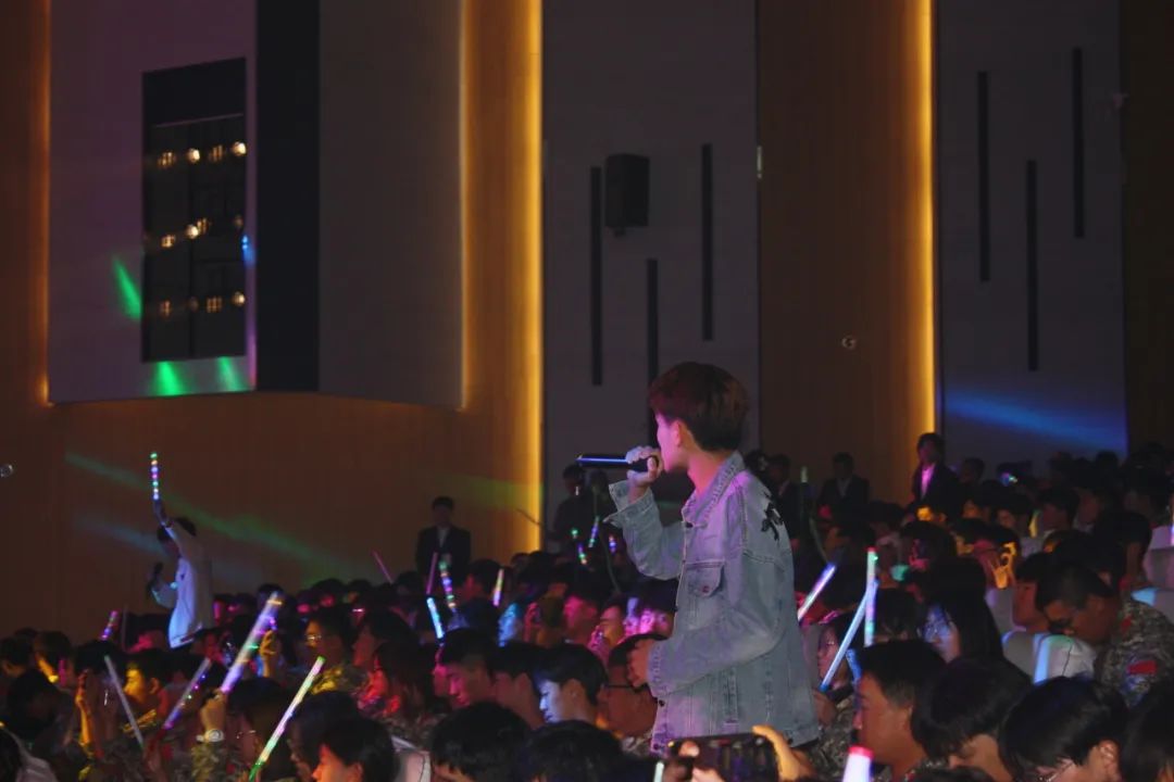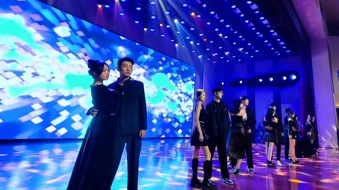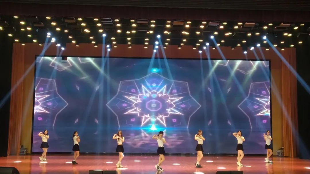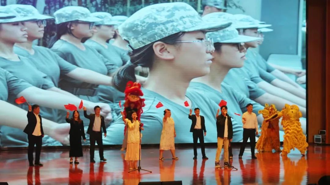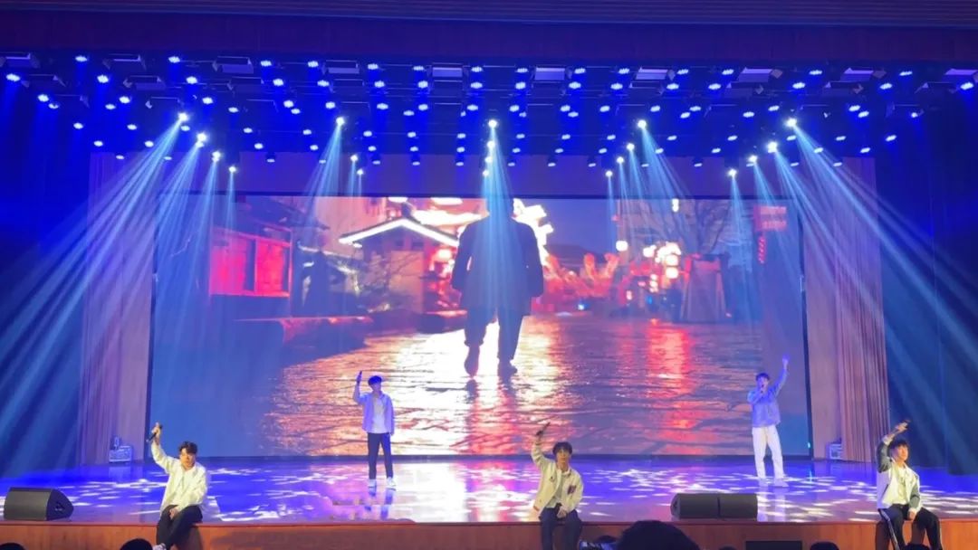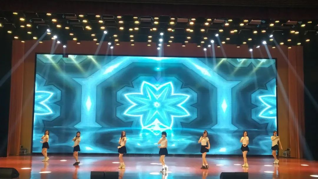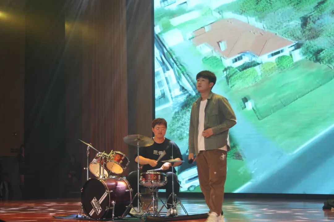经营管理学院全体辅导员老师们为大家带来的《相亲相爱》使现场顿时热闹起来,后面大屏幕播放着自新生入学以来的记录片影集,充分体现了经营管理学院以心相迎新同学的到来。