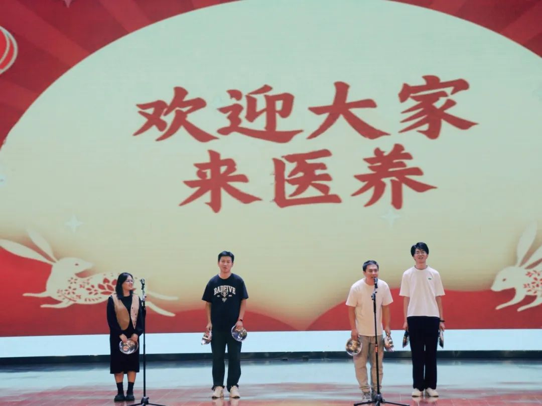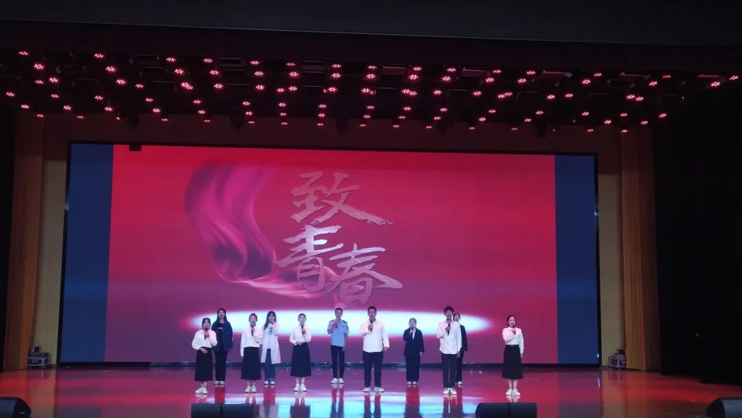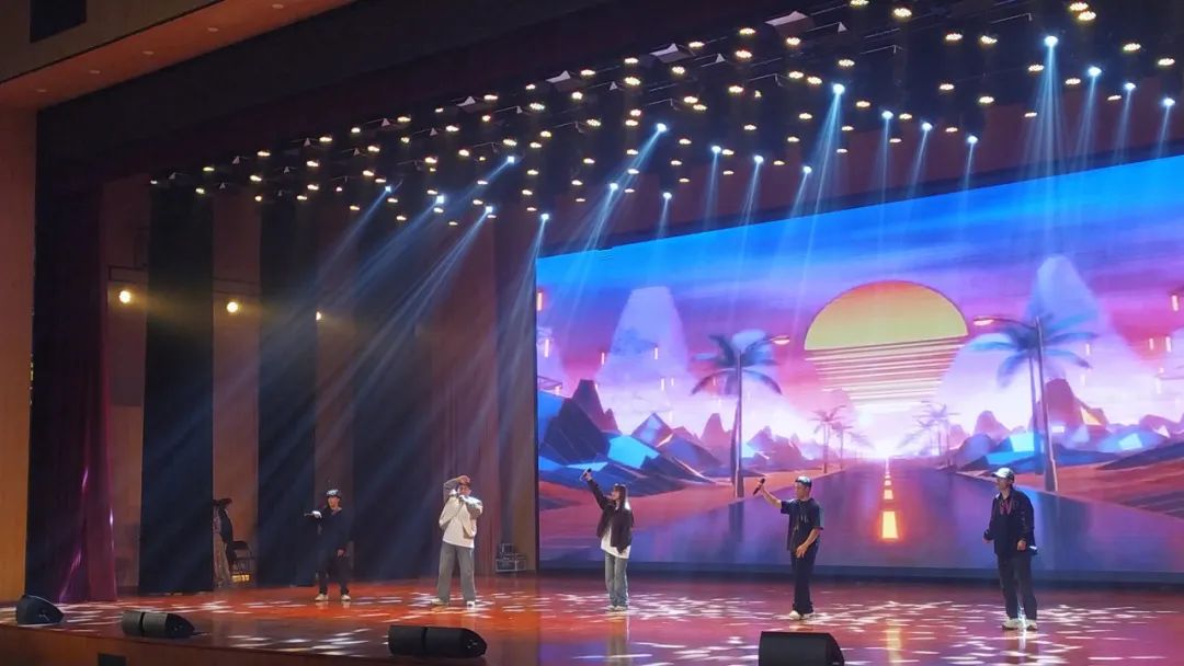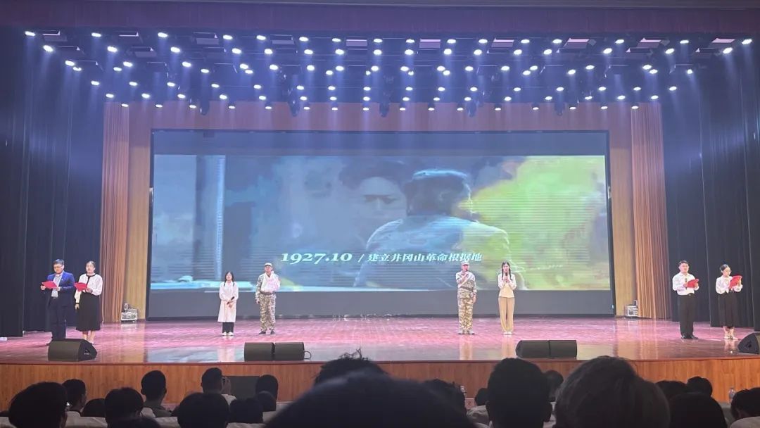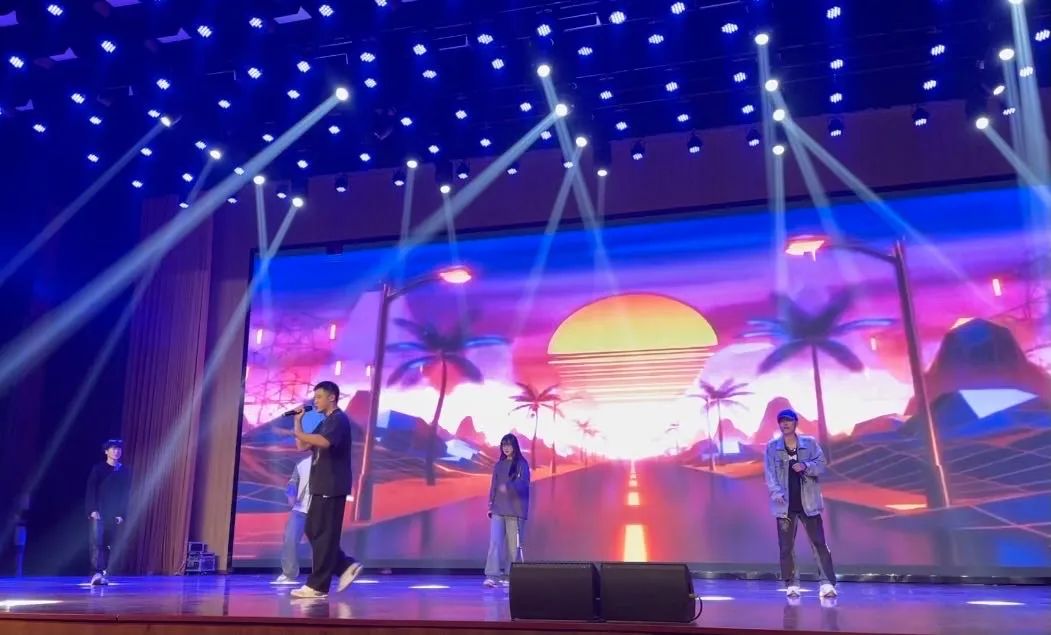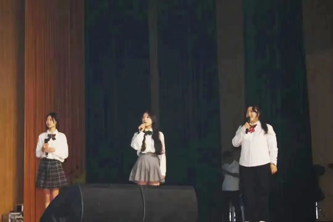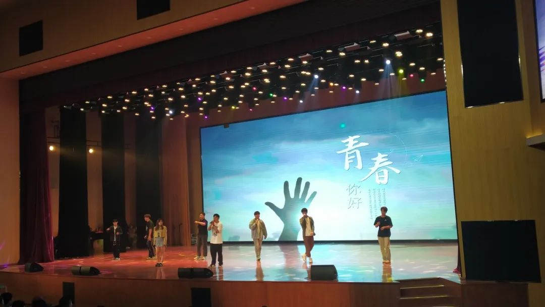 经营管理学院全体辅导员老师们为大家带来的《相亲相爱》使现场顿时热闹起来,后面大屏幕播放着自新生入学以来的记录片影集,充分体现了经营管理学院以心相迎新同学的到来。