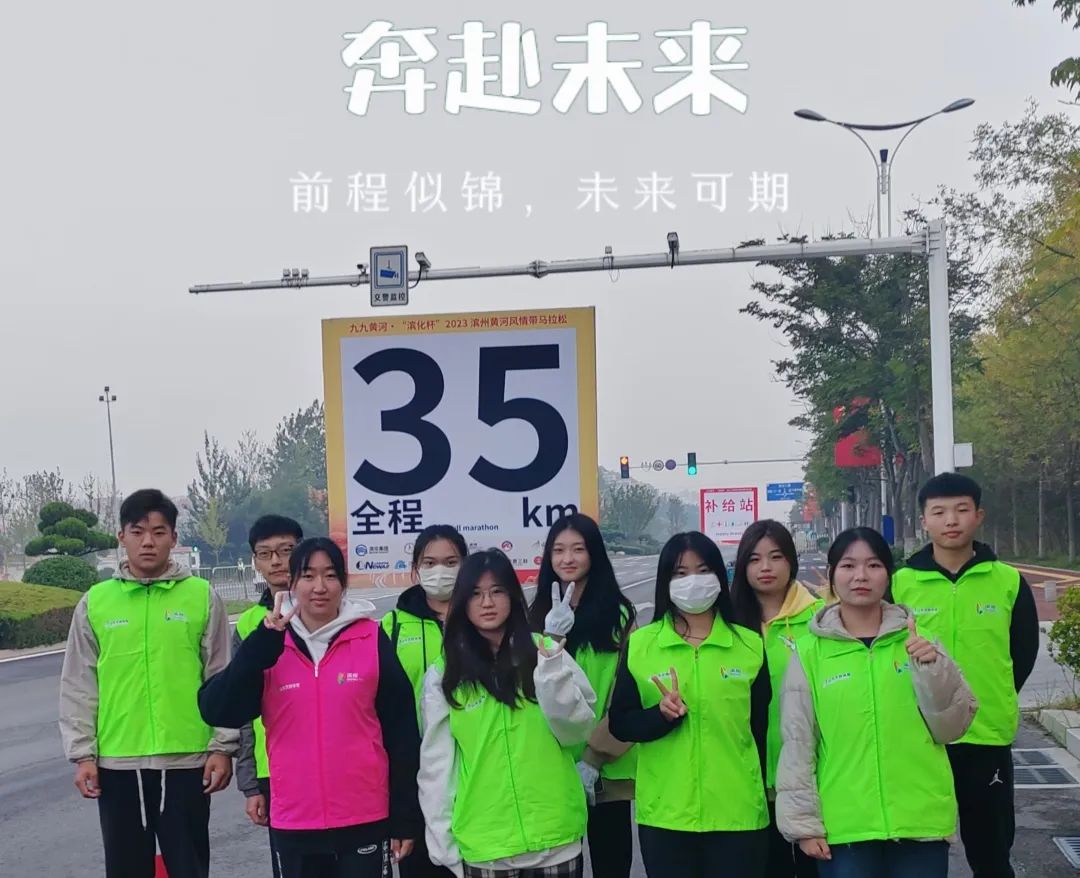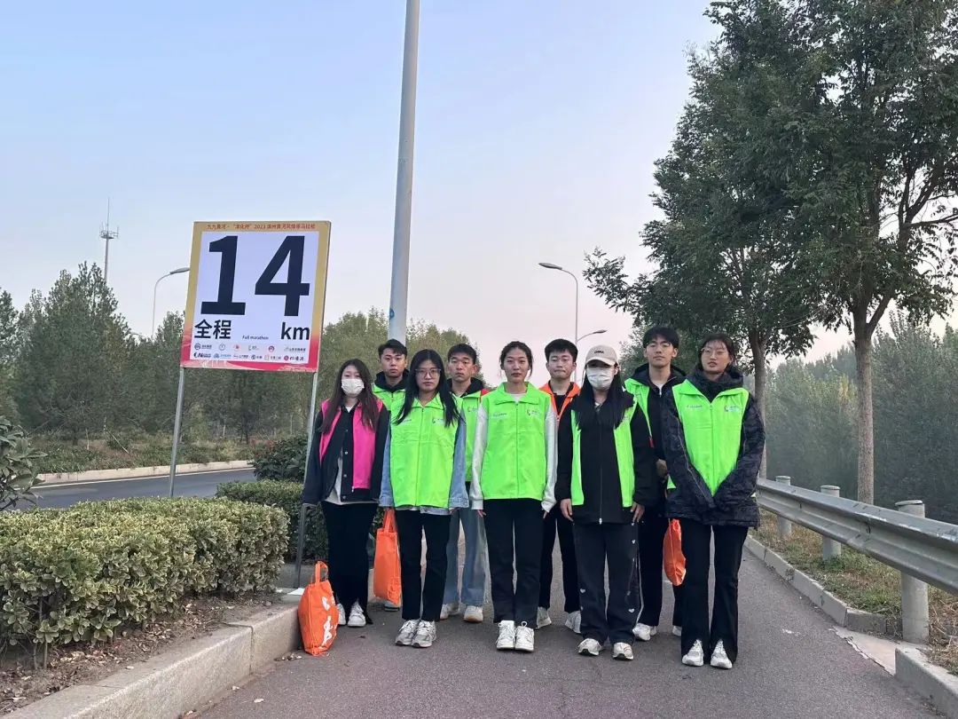 10月15日,九九黄河·2023滨州黄河风情带马拉松赛鸣枪起跑。beat365在线唯一官网由团委精心组织,各二级学院择优推荐选拔,共计300名志愿者学生和20名志愿者老师加入其中,为滨州马拉松保驾护航。