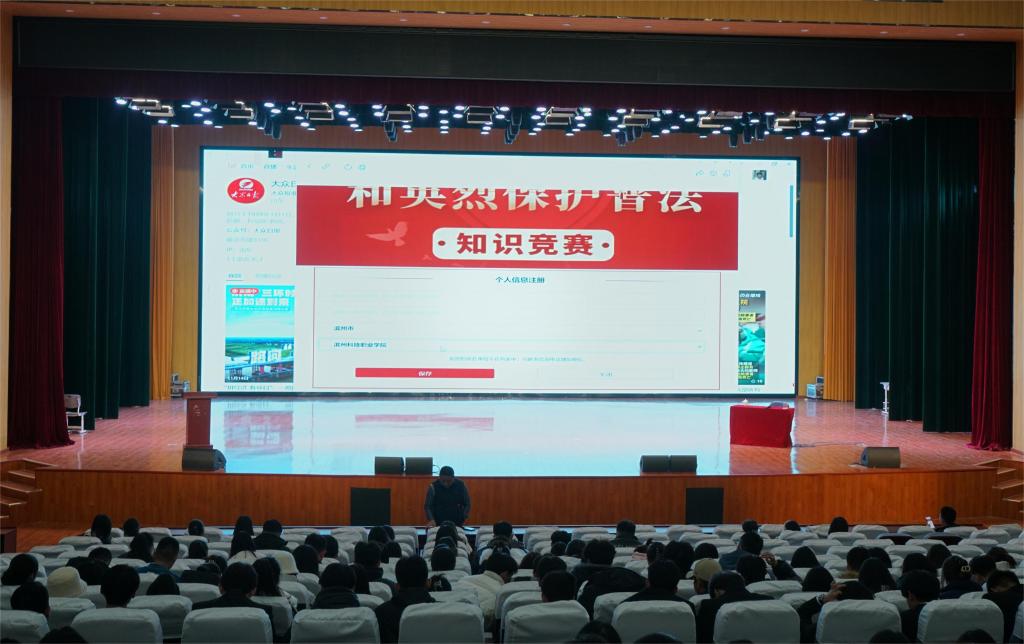 首次答题活动在音乐厅举办,教职工代表、各班长、团支书参加活动。大家通过搜索“大众日报”微信公众号,点击关注,注册个人信息,在菜单栏进入“退役军人”后进行答题。本次答题后,全校教职工、全体学生陆续加入到答题活动队伍,通过一周两次答题,持续一个月的时间,充分学习掌握退役军人保障和英烈保护普法知识。