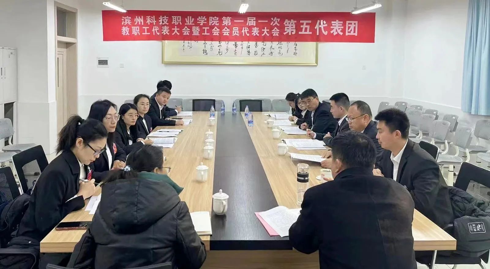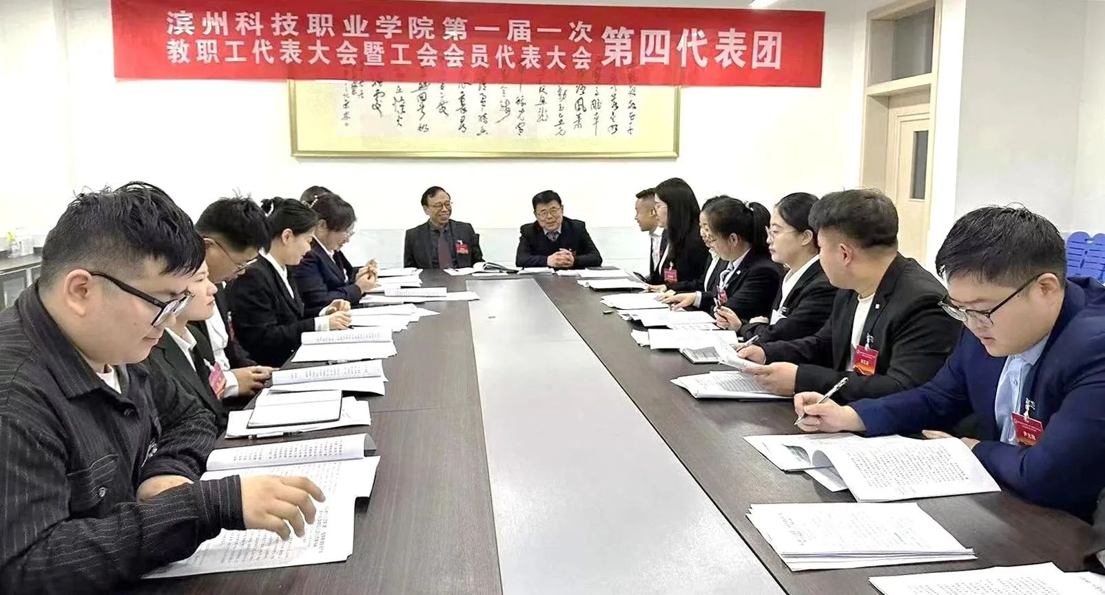 6个代表团分别讨论审议《院长工作报告》和《工会工作报告》。并结合工作实际,为学校高质量发展建言献策。