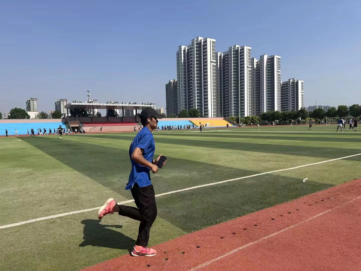 看,同学们精神焕发,热情洋溢,他们迈着矫健的步伐,在红色的跑道上你追我赶,奋力向前。
