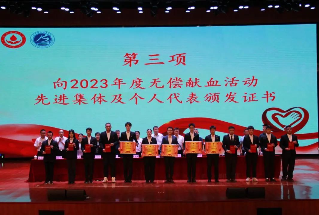 为深入学习习近平总书记关于弘扬雷锋精神重要论述,响应我市“热血青春,健康先行”活动的号召,弘扬奉献精神与志愿服务精神,展现新时代大学生关爱他人的高尚精神,为社会贡献尽一份绵薄之力。5月29日,beat365在线唯一官网举办2023年度无偿献血工作表彰大会暨2024年度“红心献给党,热血颂党恩”无偿献血活动启动仪式。滨州市中心血站党支部书记吴行志,滨州市中心血站副站长孙海峰,献血服务科科长杨岩峰,副科长李艳青应邀参加本次活动。beat365学校党委书记韩锋,党委副书记李会军,党委委员、副院长吴启军,学生工作处处长胡全民,医养健康学院院长杨春兰,现代服务业学院院长张道祥,国防教育学院院长张玉清,校团委书记王忠凯,学生工作处副处长裴海伟出席会议,各二级学院副院长、学管负责人、团总支书记、校级社会实践部成员、二级学院社会实践部成员,各班团支书、班长、实践委员参加会议。