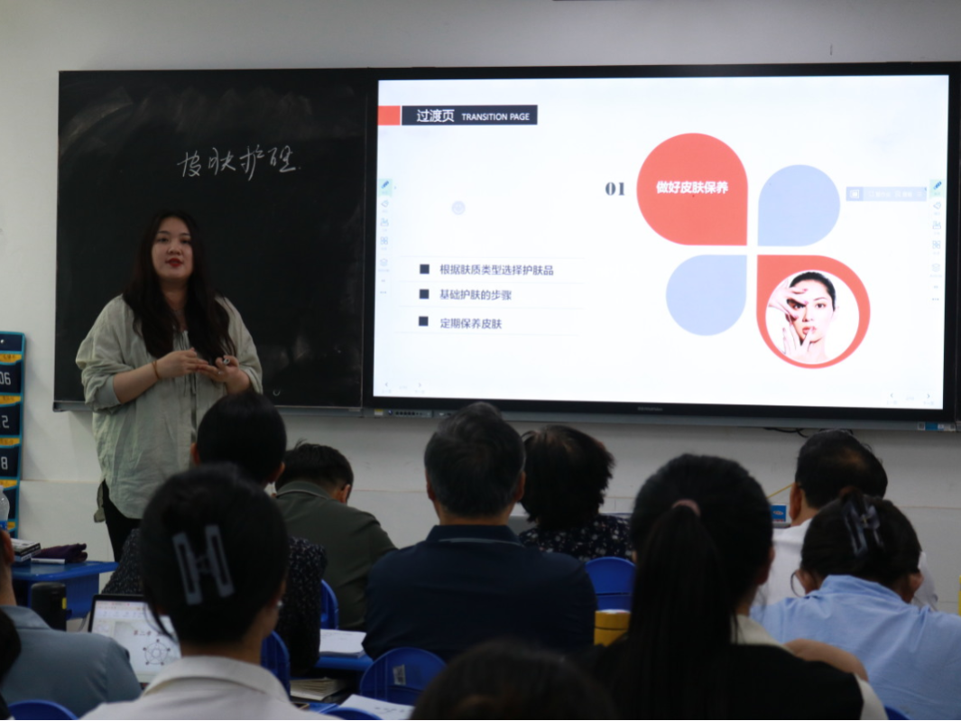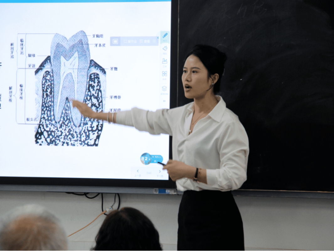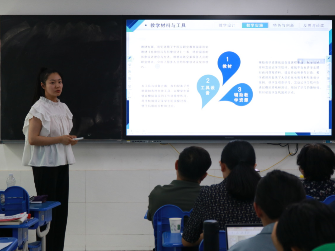 10支参赛团队按照赛前的抽签顺序依次上台竞赛,每组参赛团队在规定时间内完成教学实施报告介绍及授课展示。