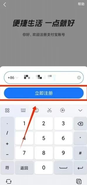 4、点击注册后,支付宝会发送一个短信验证码,输入验证码