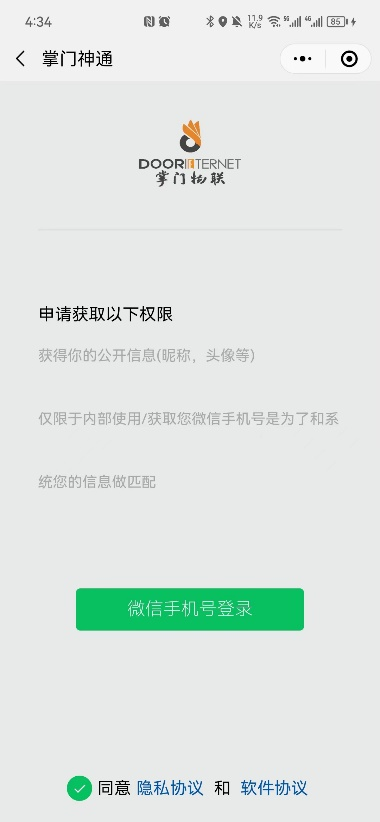 1、 打开微信消息页面搜索”掌门神通”小程序或者微信扫描门锁上的二维码进入小程序。