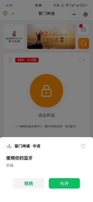 6、进入后会直接显示在首页,在门附近,点击开门即可,若在使用过程中遇到问题,可点击“耳机”按钮,咨询客服解决问题。