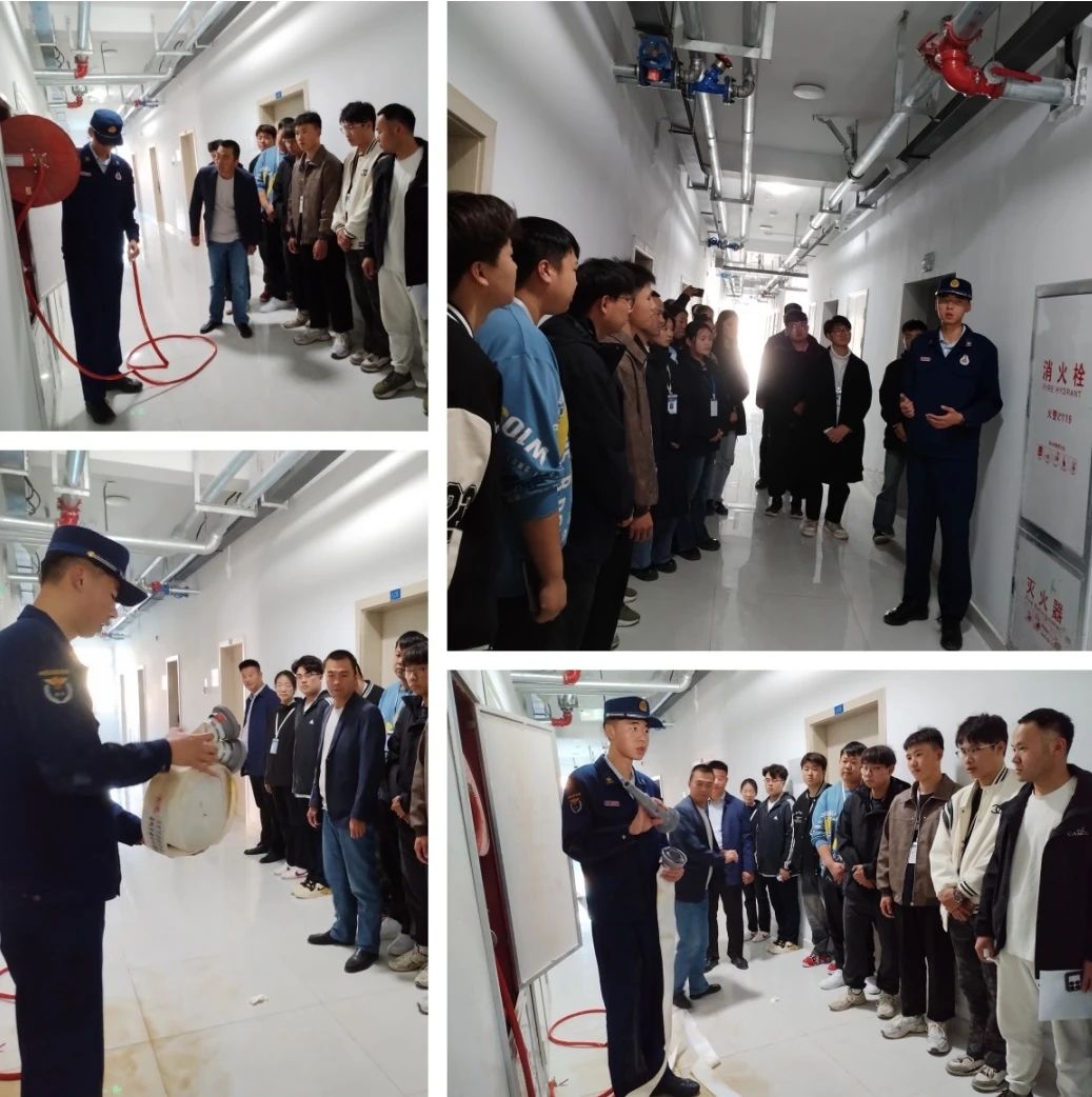 公寓楼人员密集,室内火灾的危险性相对较大,教官现场教学,讲授室内消防栓如何开关、如何取用水带以及如何连接水管等知识。