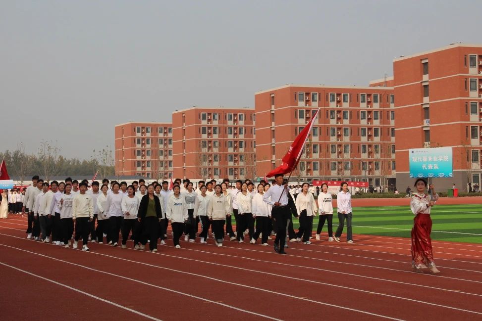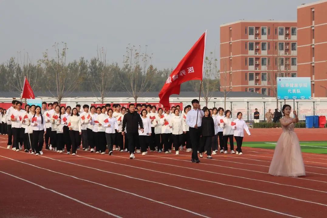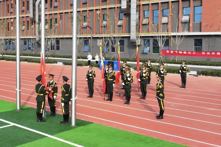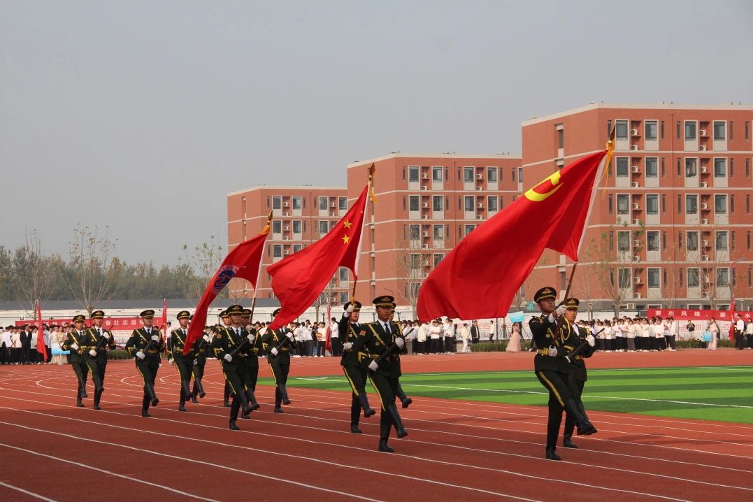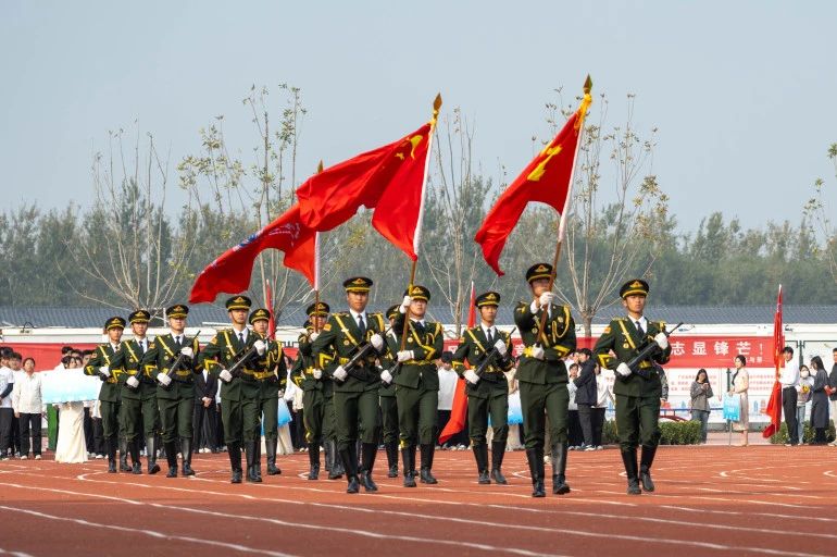 随着昂扬奋发的入场曲,国旗护卫队迈着整齐划一的步伐入场。他们身穿统一制服,步伐整齐,气势昂扬,成为田径场上最吸引人的风景,展现了新时代青年的朝气与风貌。