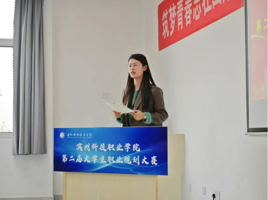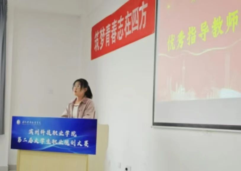 智能制造学院王雪老师代表职业规划大赛优秀指导教师发言,她鼓励学生积极参与比赛,表示职业规划大赛是为同学们提供了一个展示自我、锻炼能力的平台,同学们要清晰地认识自己,了解不同职业的需求,为未来的发展打下坚实的基础。