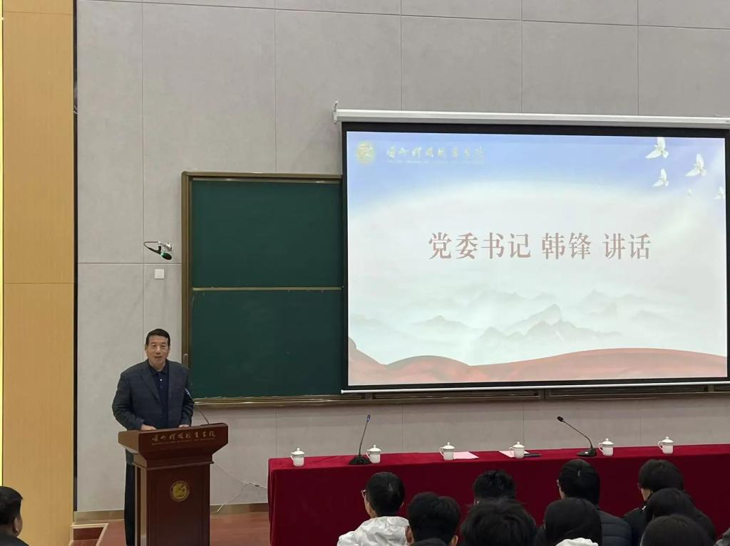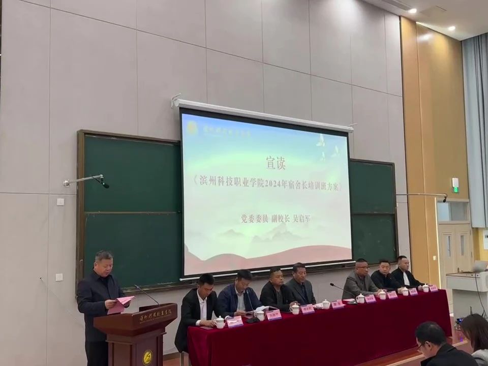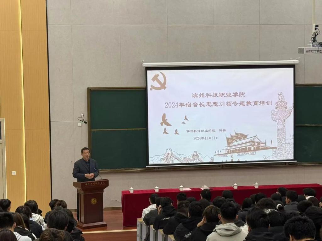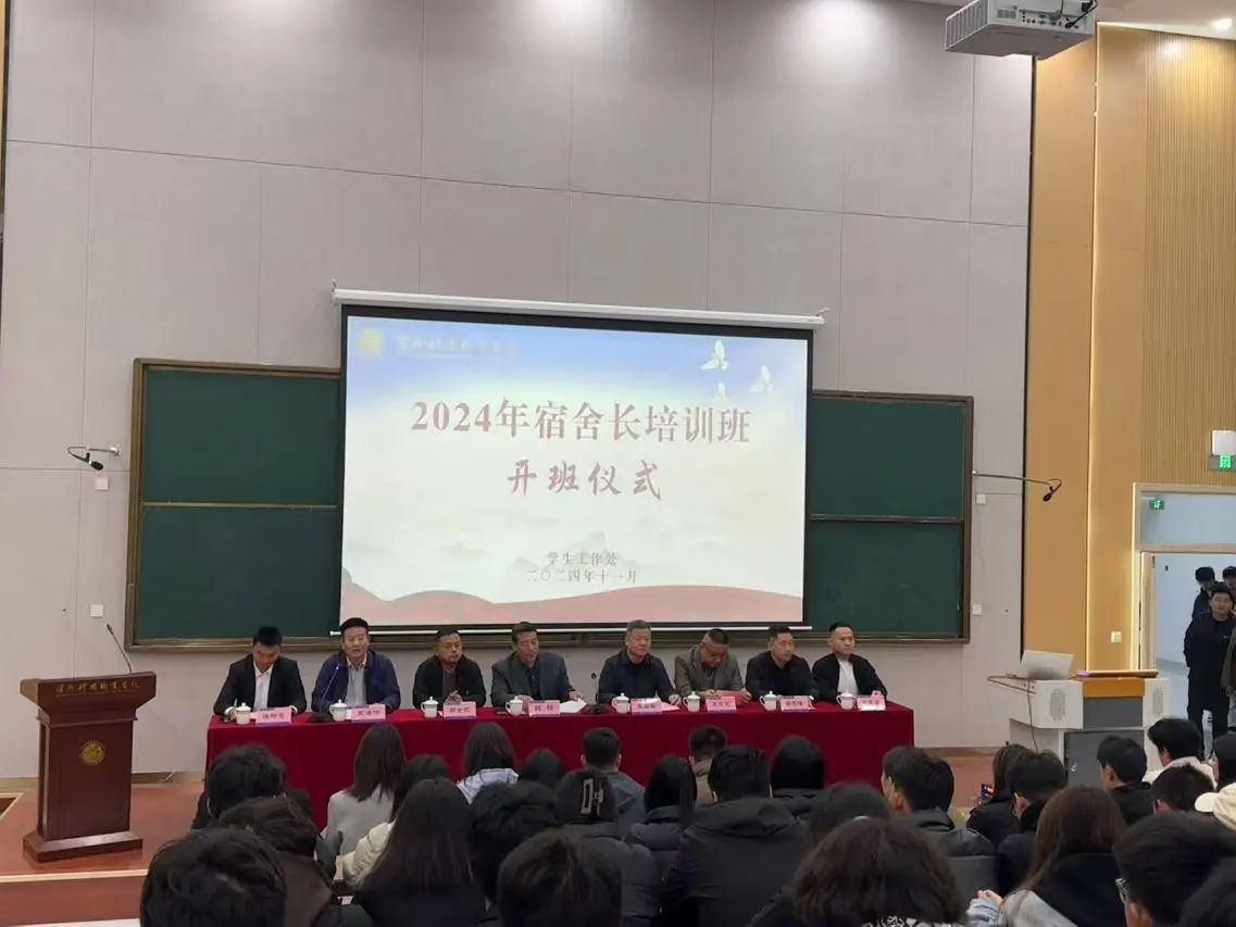 为深入贯彻落实全国高校思想政治工作会议精神和全国教育大会精神,提高公寓管理团队服务能力,培养高素质学生干部,打造安全文明宿舍,共创温馨校园。11月11日,在学校1号楼D区举行beat365在线唯一官网2024年宿舍长培训班开班仪式和“引航新时代,奋斗新征程”爱党爱国教育讲座。beat365在线唯一官网党委书记韩锋,党委委员、副校长吴启军,学生工作处处长胡全民,校团委书记兼学生工作处副处长王忠凯及各二级学院学生管理副院长(负责人)、公寓管理中心人员、辅导员代表、社区主任、社区管理员、培训班第一期参训宿舍长参会。会议由学生工作处副处长裴海伟主持。