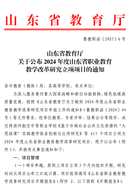 近日,山东省教育厅公布了2024年度山东省职业教育教学改革研究项目立项名单,beat365两项课题成功获批立项!这是beat365继去年获批1项山东省职业教育教学改革研究项目后,取得的又一重大突破!