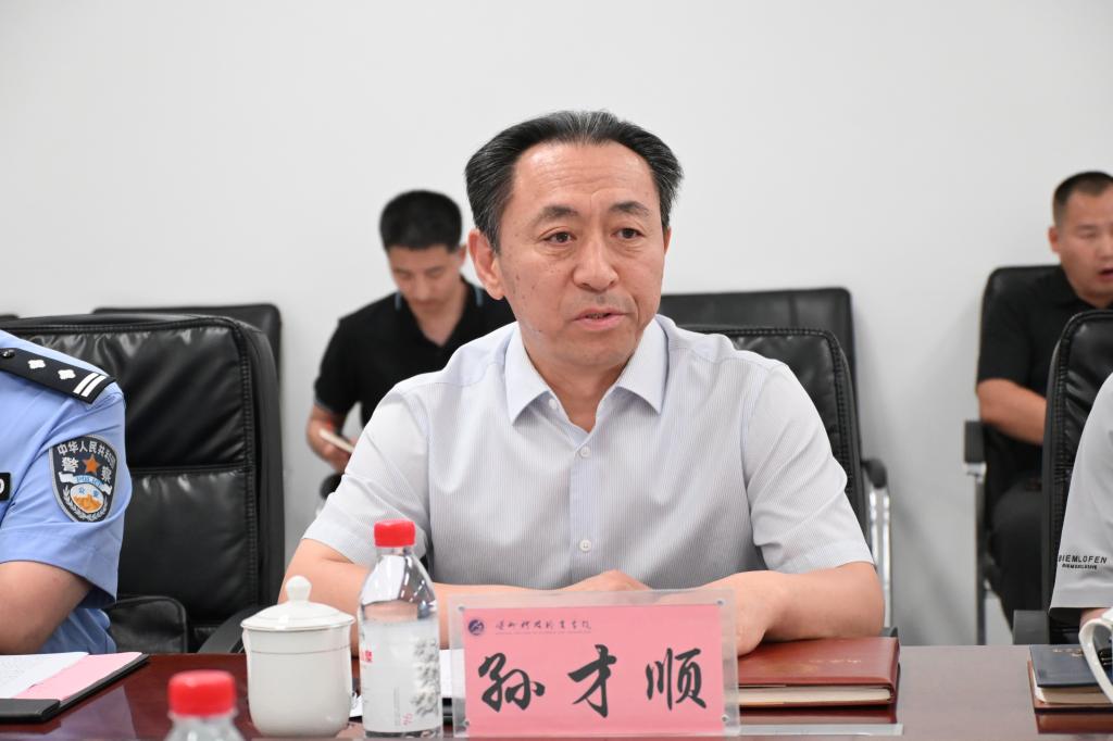孙才顺介绍学校的基本情况,并详细阐述了学校精心打造的六大专业集群与四大特色校园。