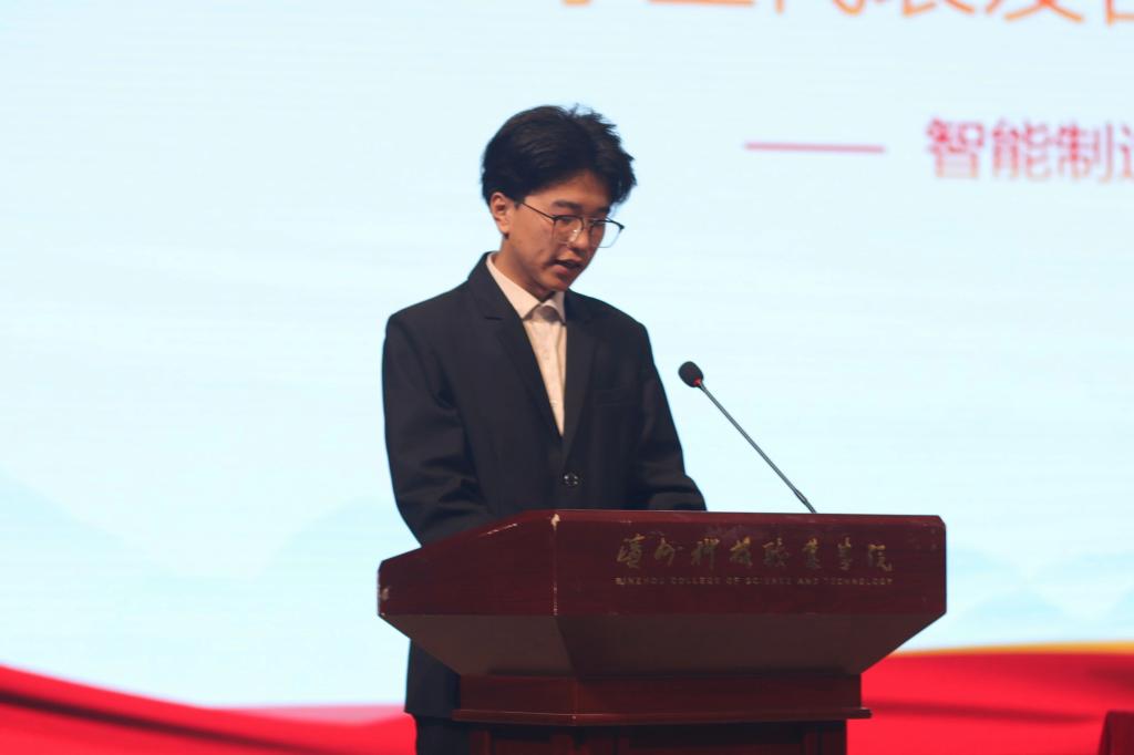 随后,学生代表张帆启航发言。他代表全体学生向关心支持他们的领导和老师表达了崇高的敬意和诚挚的感谢,并呼吁同学们积极参与心理健康教育月的各项活动,在探索与实践中认识自我、关爱他人,让健康心理成为人生最坚实的铠甲。
