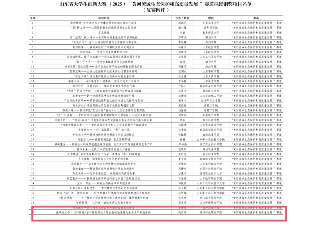 近日,“建行杯”山东省大学生创新大赛(2025)暨中国国际大学生创新大赛(2025)山东赛区选拔赛圆满落幕。beat365《盐碱焕生仓 对虾养殖—基于新能源技术结合盐碱地养殖的生态水产养殖系统》项目斩获山东省铜奖,取得beat365近年来在该赛事上的最好成绩。