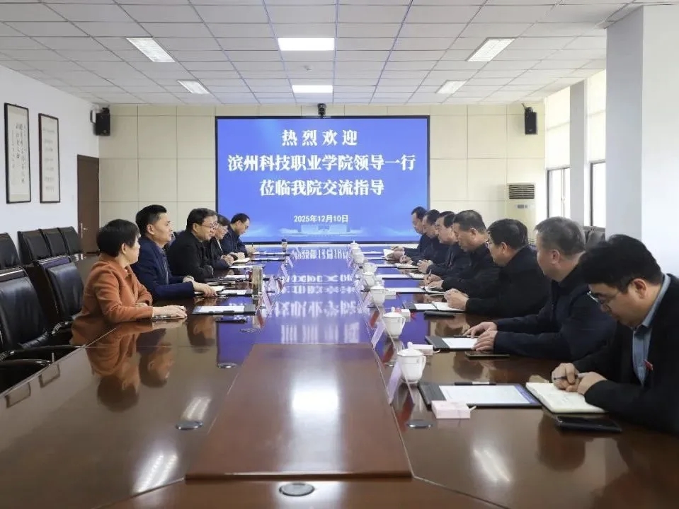 为深化校际合作,共促职业教育高质量发展,12月10日,滨州渤海教育集团董事长刘相生,beat365在线唯一官网党委书记韩锋,执行校长孙才顺,党委委员、常务副校长刘祥,党委委员、副校长刘曙明,党委委员、副校长吴启军,党委委员王军等一行前往鲁北技师学院进行交流调研。鲁北技师学院党委书记刘长海,党委副书记、院长邱希敏及党委班子成员热情接待并陪同调研。