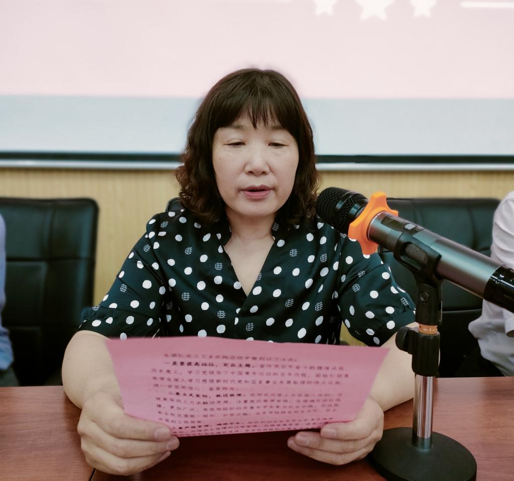 教务处处长王丽萍同志宣读《关于公布2022年大中专学生志愿者暑期“三下乡”社会实践活动校级团队的通知》;