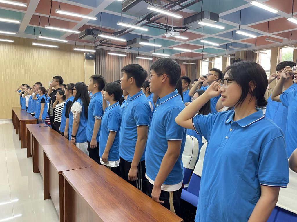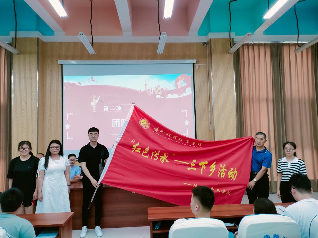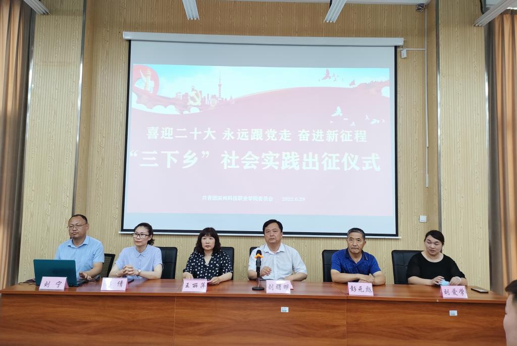 为深入学习宣传贯彻习近平新时代中国特色社会主义思想和党的十九届六中全会精神,贯彻落实习近平总书记关于青年工作的重要思想,深入学习习近平总书记在庆祝中国共产主义青年团成立 100 周年大会上的重要讲话精神,引导和帮助广大青年学生上好与现实相结合的“大思政课”,在社会课堂中“受教育、长才干、作贡献”,坚定信念听党话、跟党走,迎接党的二十大胜利召开,根据团中央、团省委相关文件精神,校团委积极组织学生参加2022年大中专学生志愿者暑期文化科技卫生“三下乡”社会实践活动,并于6月29日下午举行以“喜迎二十大 永远跟党走 奋进新征程”为主题的2022年暑期“三下乡”社会实践出征仪式。