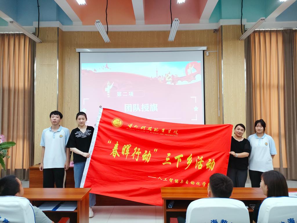 马克思主义学院副院长刘爱学同志为人工智能与自动化学院暑期“三下乡”志愿服务队授队旗。