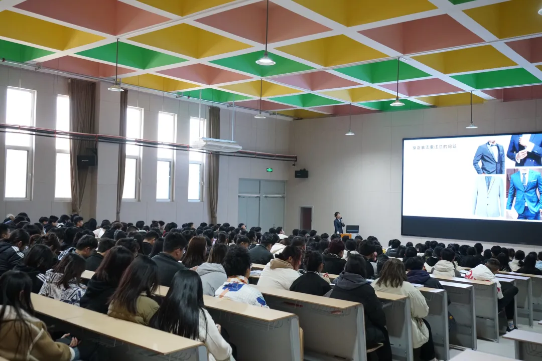 在讲座上,杨婷院长与学生们密切交流,讲解了一些关于着装的知识点,讲述了在不同场合的服装搭配以及站姿和手势,并给大家亲身示范,通过声情并茂、绘声绘色的讲授,给全体同学留下了深刻的印象,潜移默化地影响了在场的同学,让部分同学正确理解着装,提高审美,认识到个人形象的重要性。