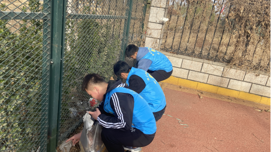大家将地上的纸皮、零食包装壳、烟头等垃圾一一拾起,不放过任何一个角落,让受到污染的道路回归其最本真、最干净的形象,打造一个干净整洁、美观舒心的校园生态环境,深刻铸造良好的清洁意识与校园主人翁精神。