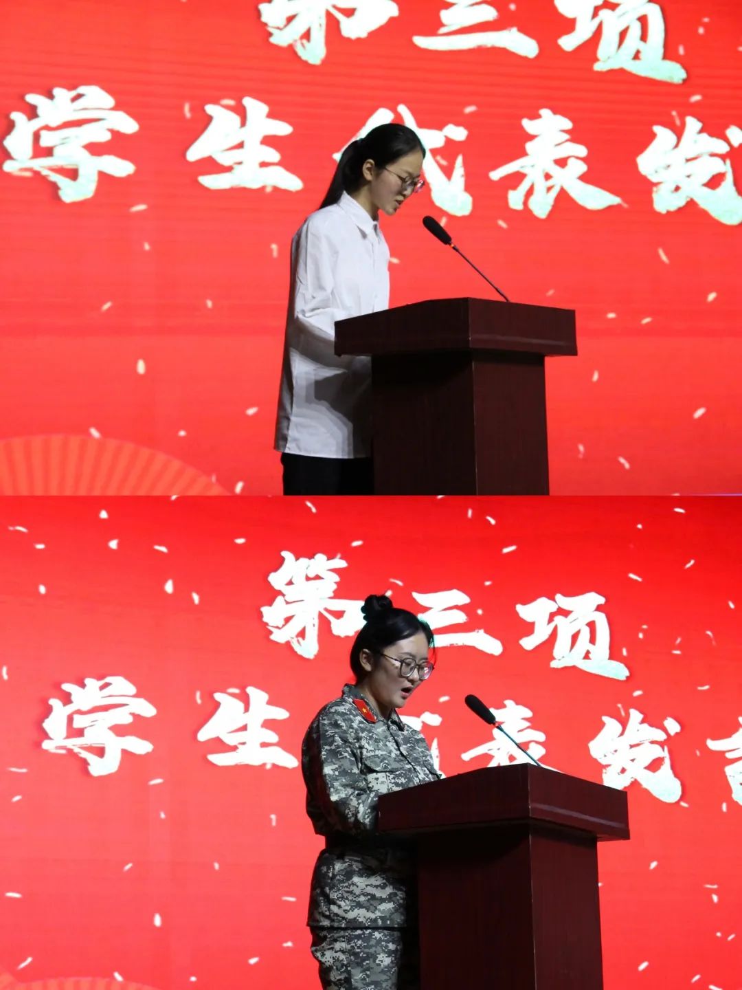 老生代表向全体师生介绍了自己学习和生活的各方面情况,分享了自身的学习经验。新生代表也表达了自己对大学生活的向往以及对今后学习和生活的规划,期待着未来三年,在院训“惟精惟专,惟慧惟诚”的指引下,能与现代服务业学院的同学们相知相伴,共同进步。