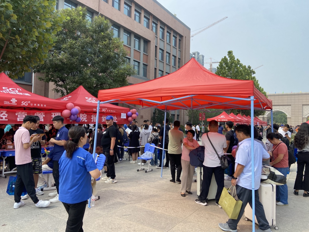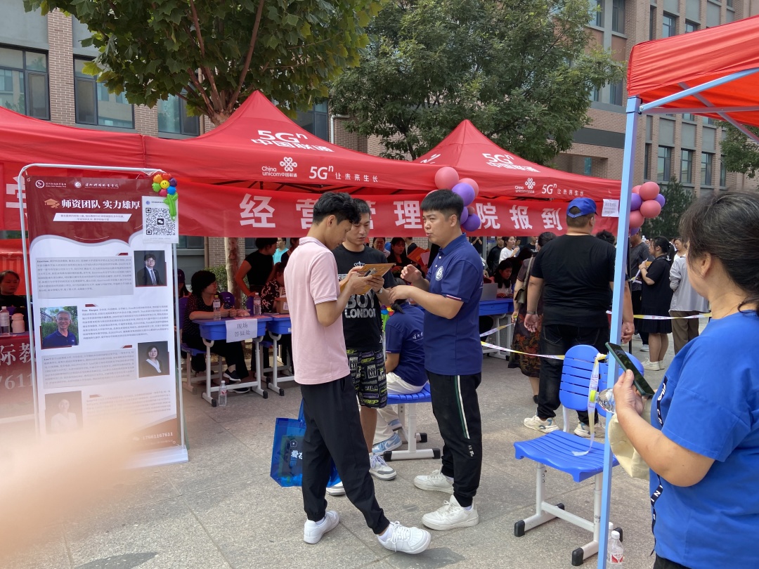 从日出到日落,志愿者们始终没有停下他们工作的步伐,用认真的工作态度和饱满的工作热情向新生同学和家长们展现了经管风采。