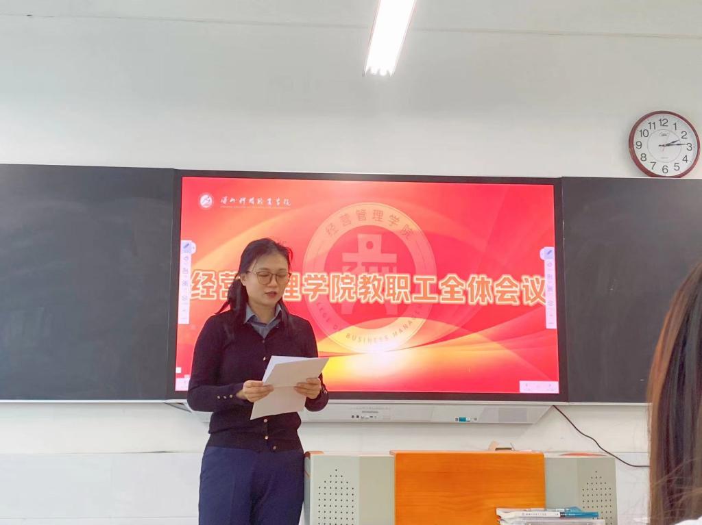 此次教职工全体会议凝聚经营管理学院全体教职工的智慧和力量,必将推动学院事业不断向前发展,相信在全体教职工辛勤付出和奉献下,共同书写学院发展的新篇章!