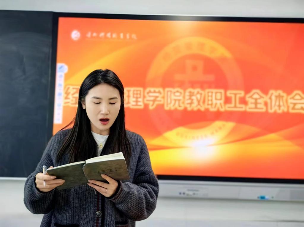 最后,杨婷在总结讲话中解读了经营管理学院新的管理制度,强调了规范管理对学院发展的重要性,并对未来的发展方向和目标进行了展望,为全院教职工指明了前进的方向。