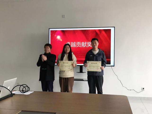 大会第四项,颁奖环节。院长沈燕宁为苏斌、高婷颁发“卓越贡献奖”荣誉证书。
