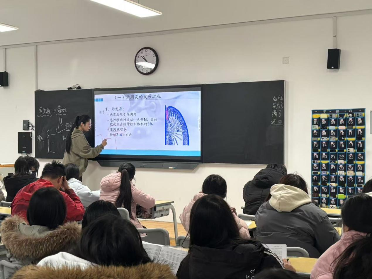 课堂伊始,邱悦老师快速进行了班级考勤,通过“什么是牙周病”这个问题正式引入本节内容,以富有感染力的语言带领学生深入口腔的世界。复杂的知识在邱悦老师巧妙的讲解与演示下变得生动易懂,抽象的概念通过实际案例的引入使学生们迅速掌握,学生们专注聆听,跟随老师的思路逐步攻克难题。课堂互动中,学生们积极发表自己的见解,思想的火花在讨论中不断碰撞,充分锻炼了学生的案例分析能力。